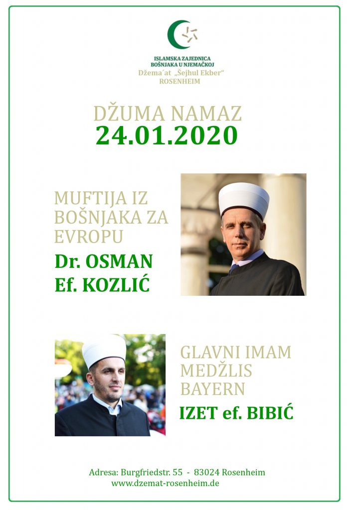Esselamu alejkum, Čast i zadovoljstvo nam je obavjestit Vas, da akobogda ovoga mubarek petka imamo dvojicu gostiju. Naime, Muftija za